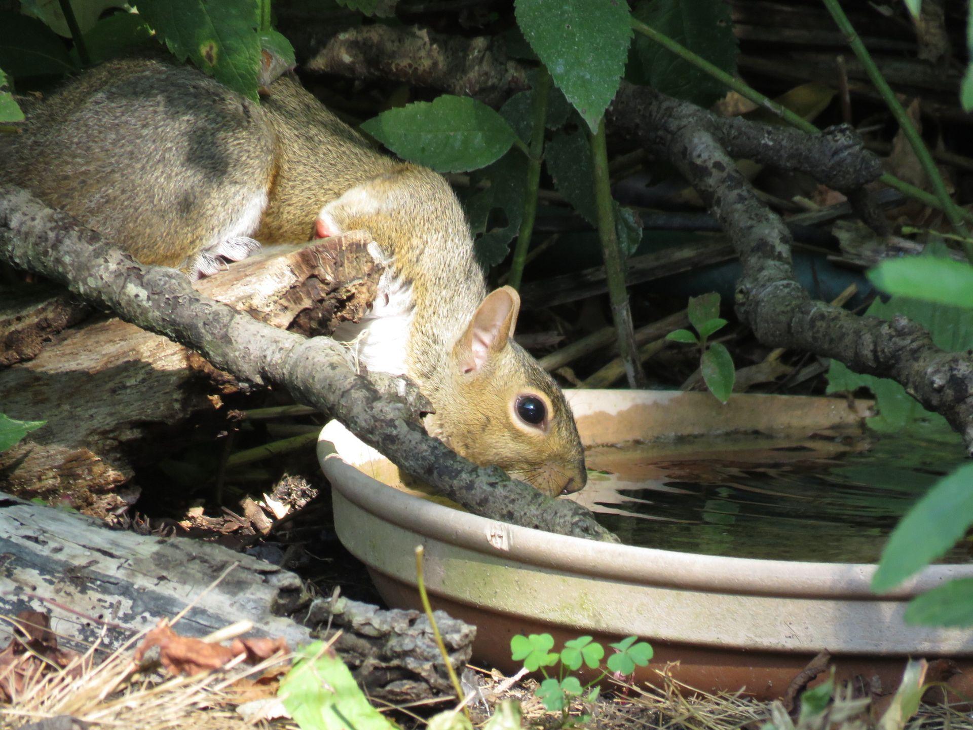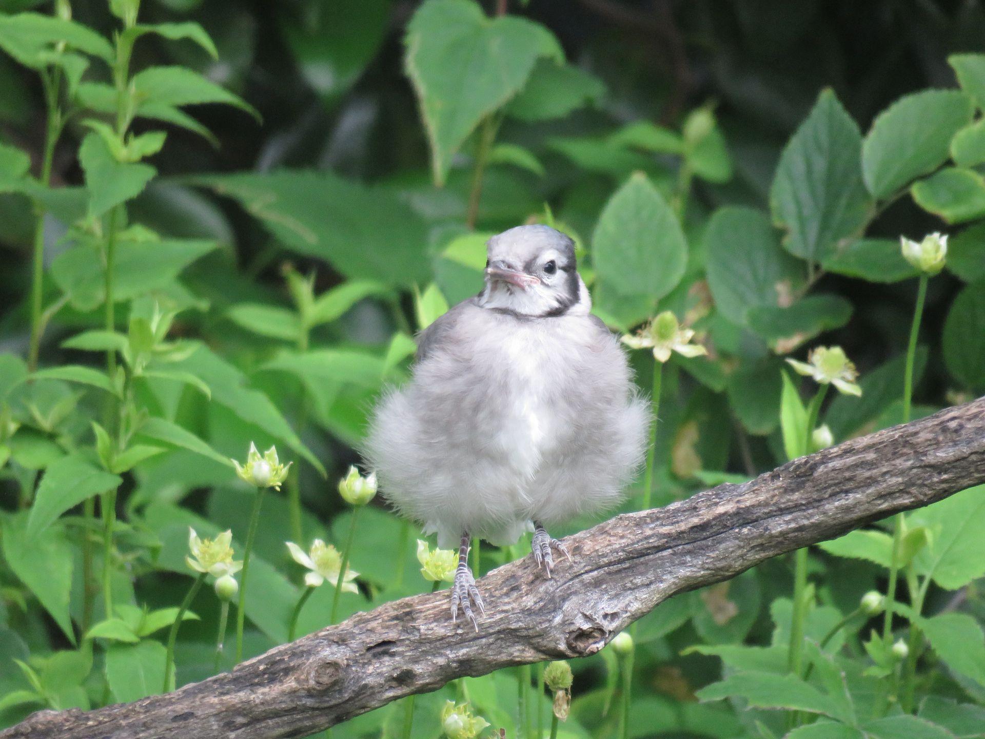 A successful wildlife garden will not only have native plants that provide nectar for pollinators, but will have fruiting shrubs for migratory birds. Shrubs also provide cover when curious raptors come in to forage! Water is a critically important component of a native garden and is most easily created by use of a dripper and/or mister. Water is needed in winter too, so plan to provide heat to have a spot for drinking and bathing. Other features such as branch piles, fake snags, and natural features are very attractive. A fake snag provided a suitable resting spot for a baby Blue Jay in my backyard.
